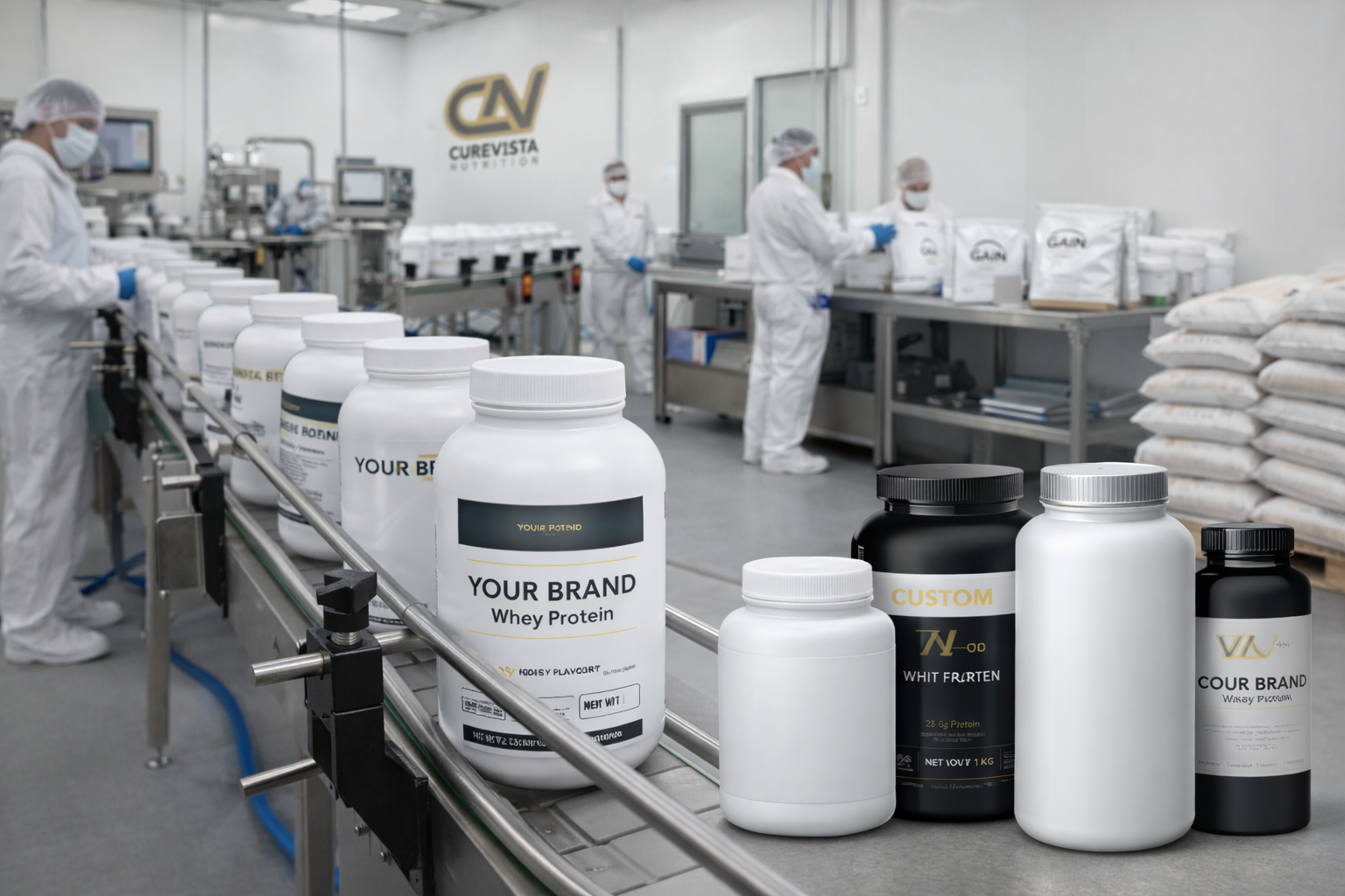 Curevista provides complete white-label and private labelling services for whey protein brands that want to enter or grow their business in the nutrition industry. Our advanced production facilities and our dedication to maintaining high-quality standards enable you to start your own branded whey protein business with complete assurance.