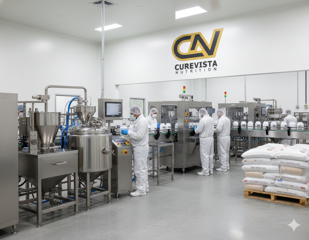 Curevista offers GMP-compliant manufacturing, advanced infrastructure, and expert formulation support. We help brands launch high-quality whey protein products with consistent quality, regulatory compliance, and scalable production.