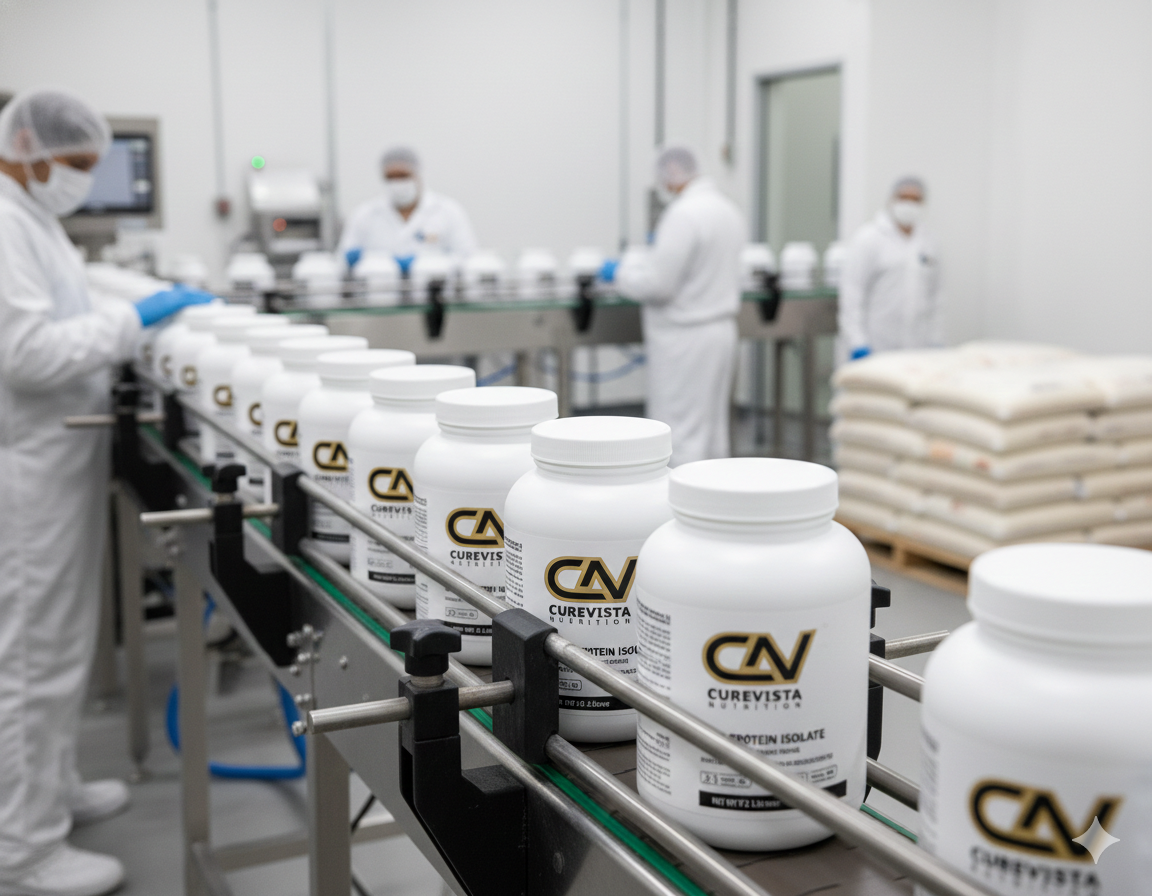 Curevista has developed its manufacturing process to produce products that meet safety standards, maintain consistent quality and deliver their complete nutritional content. The production process operates through controlled conditions that adhere to established quality standards to produce premium protein and nutraceutical products that fulfil industry requirements.